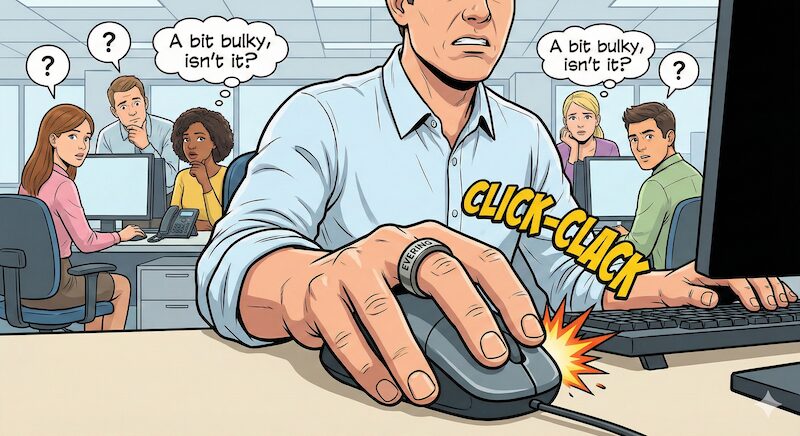 しかし、マウスを握ると、どうしても指輪の側面がマウスのボディに接触します。